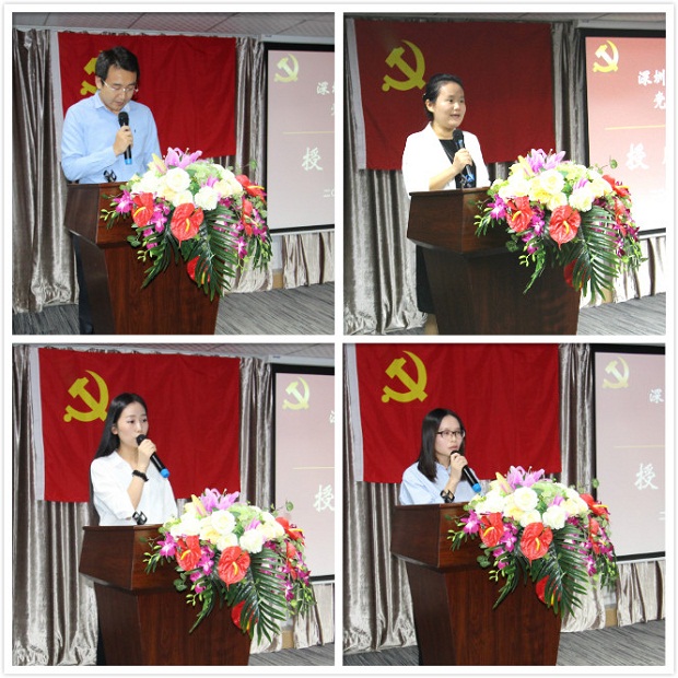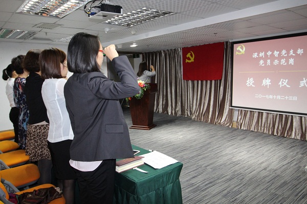 整个授牌仪式简单而隆重,意义深刻。深圳支部通过 “不忘初心,牢记使命”的党性教育,号召党员同志们铭记入党誓言,牢记自己的党员承诺,时刻提醒自己争做合格党员、起模范带头作用,以实际行动带领公司全体员工忠于职守,爱岗敬业,在平凡的岗位上做出业绩,在重要的岗位上发挥作用,全力做优做强国企,助力实现中智梦。