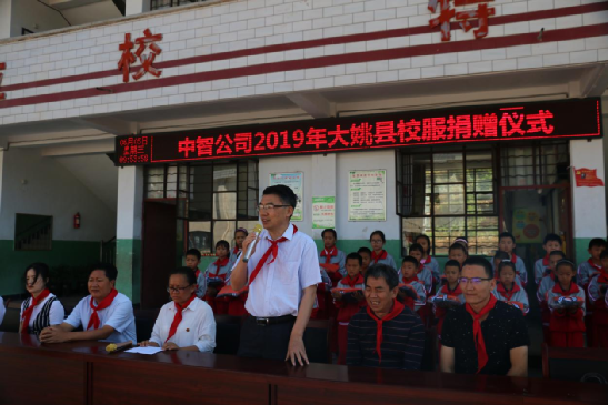 6月5日,徐晓冬一行来到大姚县六苴镇中心小学,举办“中智公司2019年大姚县校服捐赠仪式”。中智上海公司党委、中智上海工会联合会动员社会力量为贫困山区捐赠助学,供筹集资金20余万元,定制了2788套校服的,捐赠给大姚所有乡镇的部分没有校服的山区学校,让孩子们感受到社会的温暖。在捐赠仪式上,徐晓冬勉励孩子们心怀梦想、认真学习,将来走出大山、走向全国、走向世界,实现梦想。