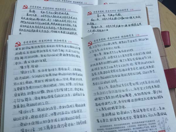 近期,中智财务咨询有限公司为深化“两学一做”学习教育,提高党员干部对党的全面认识,为党员干部践行“两学一做”学习教育打基础,引导党员逐条逐句通读党章党规和系列讲话,牢记入党誓词,牢记党的宗旨, 中智财务公司党支部要求党员开展“手抄党章100天”活动。每日抄写党章原文150字左右,用100天时间抄写党章全文。
