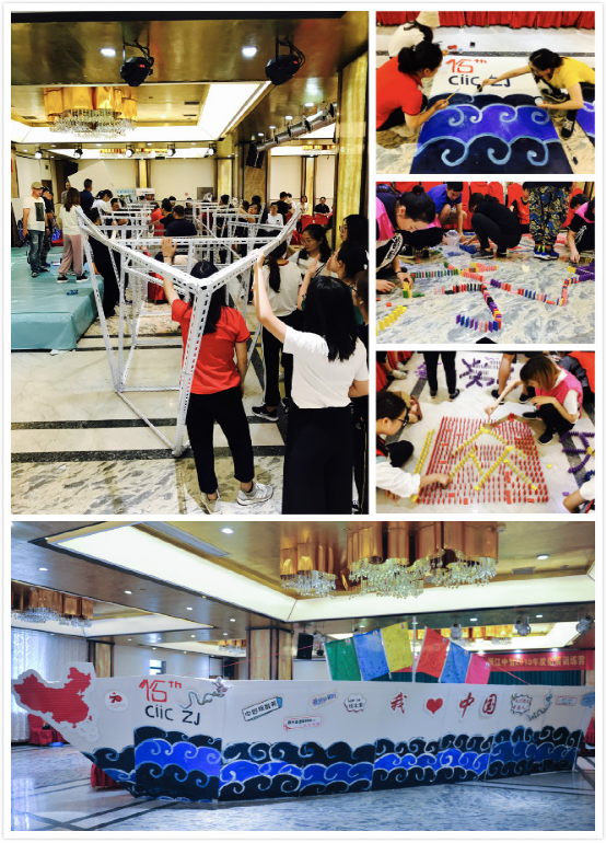 第三天的拓展项目将全体员工一分为二,新老员工需要通过团队协作,合力造就一艘“团队巨舰”,而中坚力量们则是排列主题多米诺骨牌。新老员工以老带新,传帮带的形式,迅速有序的进行了组队分工,从设计、搭建、视觉、道具,各组各司其职。中青代员工用多米诺骨牌与精巧的机关装置勾画出一个又一个字,组合成的美好愿景。经历数不清的推倒重来,付出无数的集体智慧与汗水, 每一枚骨牌、每一枚螺丝钉都饰演着必不可缺的角色, 而团队也正如巨舰和多米诺一样,面临挫折和重来, 有着各种纷扰和困难,但只要我们要凝心聚力、勇敢直面,坚定地朝着同一个方向前进,就一定能见到风雨后的彩虹。