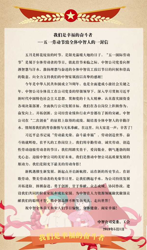 我们是幸福的奋斗者——五一劳动节致全体中智人的一封信