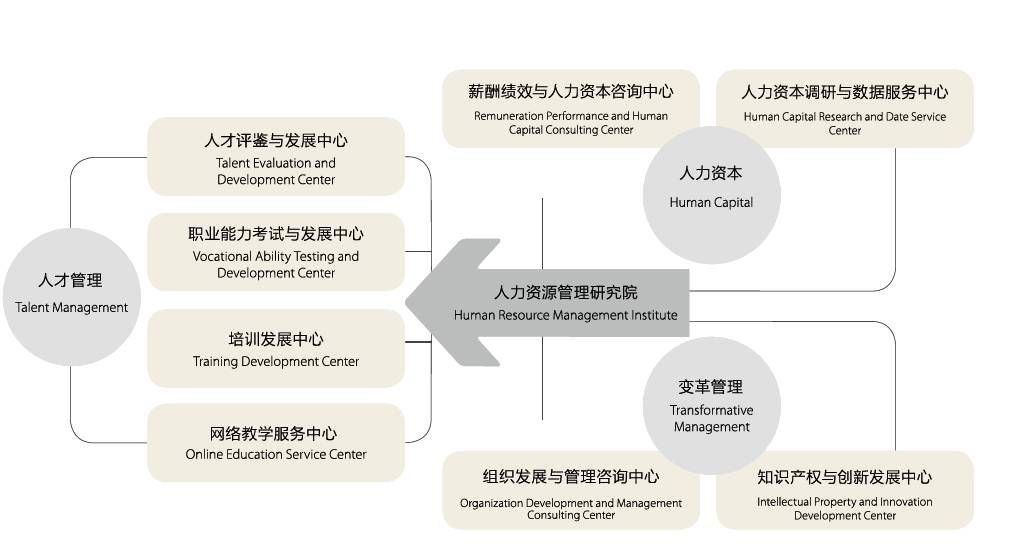 中智管理咨询拥有1个现代人力资源研究院、8个业务发展中心和由400余人组成的专业咨询团队,整合形成强大的人力资源研发与服务基地。产品包括人才评鉴、培训发展、职业能力考试、网络教学服务、人力资本调研与数据、薪酬绩效与人力资本、组织发展、知识产权等自主研发的8系列57个产品组成的整体服务产品链。