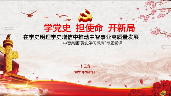 2021年3月7日,中智集团以视频会议形式召开党史学习教育动员部署会,深入学习贯彻习近平总书记在党史学习教育动员大会上的重要讲话精神,贯彻落实中共中央《关于在全党开展党史学习教育的通知》的要求,认真落实国资委暨中央企业党史学习教育动员部署会的重要精神,对集团各级党组织开展党史学习教育进行全面动员部署。集团党委书记、董事长卜玉龙讲授专题党课,党委副书记、董事、总经理王晓梅作动员讲话,党委副书记、董事、工会主席张杰主持会议。