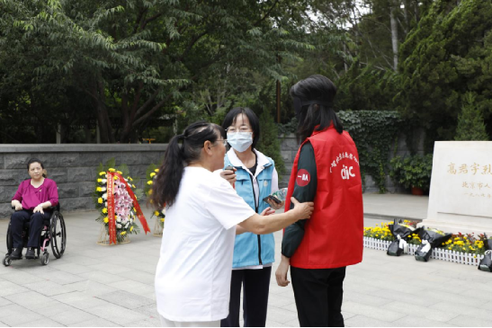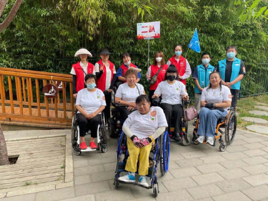 在歌声中活动进行到了轮椅健步行的环节。党员与残障朋友一道按照规定路线,从烈士墓经玉虹桥,最终到达陶然亭公园东门,以小组为单位通过照片分享本次活动中的所学、所思、所想。