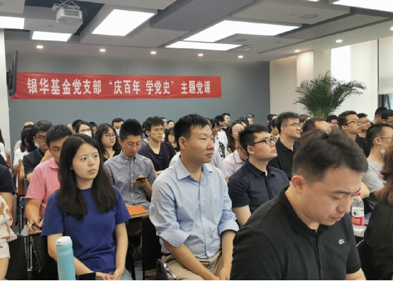 为庆祝中国共产党成立100周年,进一步提高党员的思想觉悟,重温中国共产党一路走来的光荣征程,中智银华基金党支部于2021年7月21日邀请中央党校王怀超教授,围绕中国共产党百年历史和当前国际政治形势两个主题,为银华基金全体党员和入党积极分子上了一堂生动的党课。