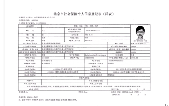 4、为了保证您能够及时、准确地参加各项社会保险,请务必确认以上信息真实、完整。新参保手续办理完毕后,医保存折将于参保后的四个月左右发放到您手中,第一次使用存折银行需要本人出示身份证原件,同时请修改初始密码(初始密码为:000000);社会保障卡约在参保后的两个月左右发放,具体发放时间以北京市社保中心下发社会保障卡的时间为准,我司一旦收到将尽快通过用人单位发放到本人手中。