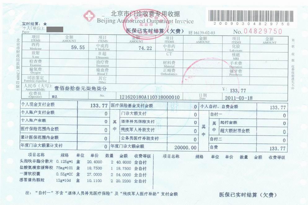 ★ 报销所需单据图片—普通门诊或异地安置外地就诊
